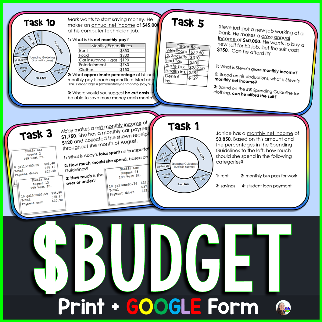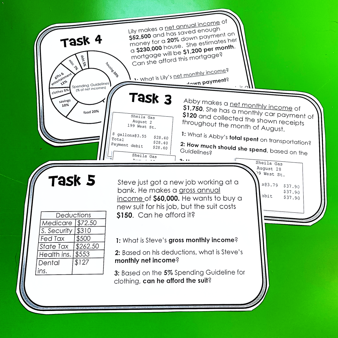 Sometimes net monthly incomes are given, other times students need to find net monthly incomes based on the information in the problems.