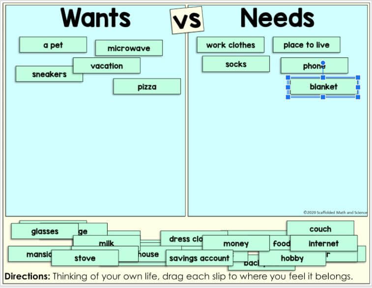 - Wants vs. Needs Digital Sorting Activity