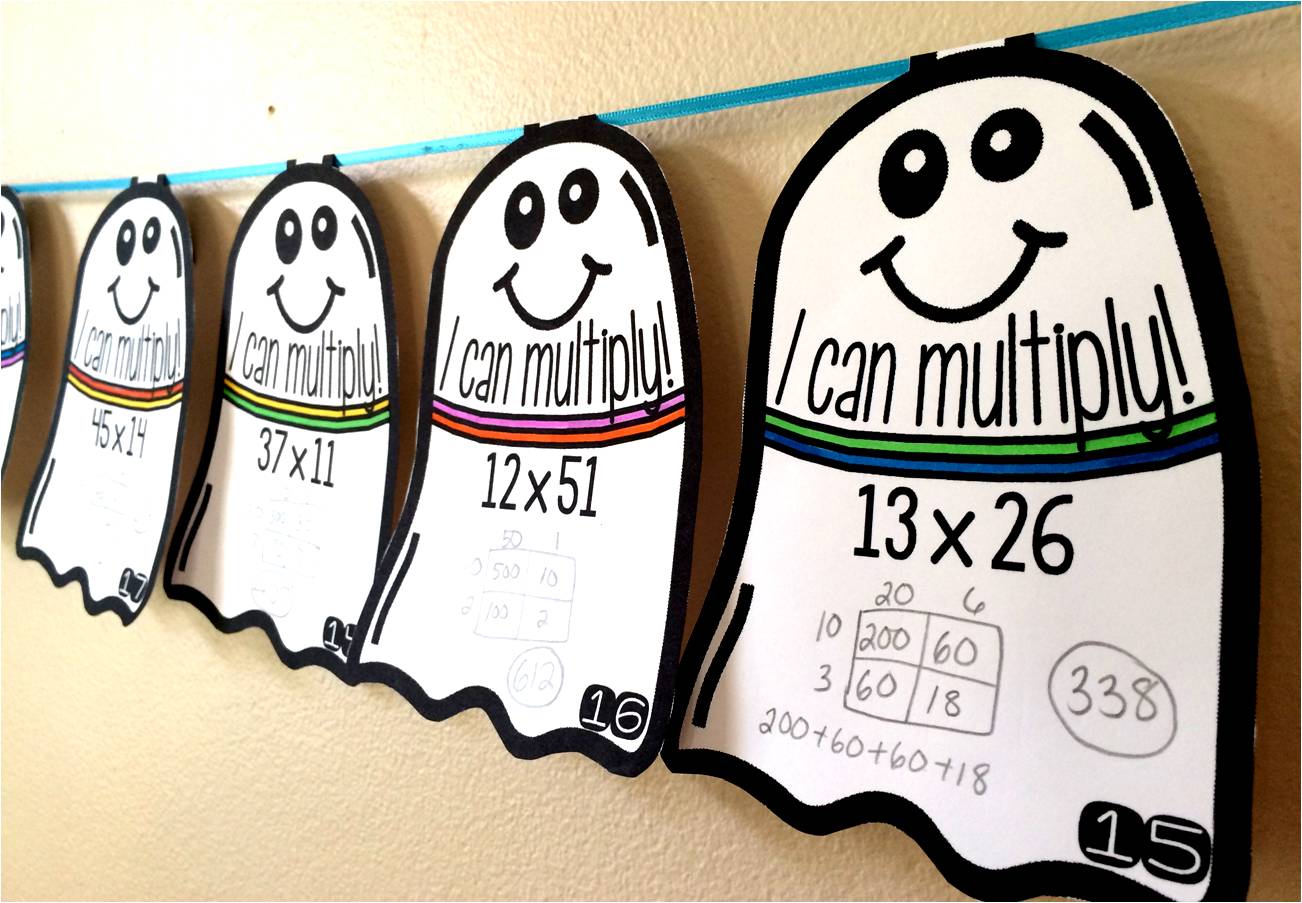 Students multiply 2-digit numbers by 2-digit numbers in this math activity that doubles as spooky Halloween classroom décor! Each pennant is in the shape of a ghost. The multiplication problems on each pennant vary in difficulty allowing you to easily differentiate.