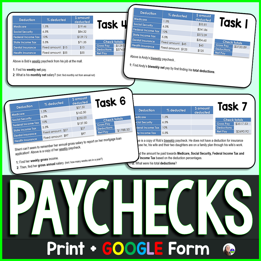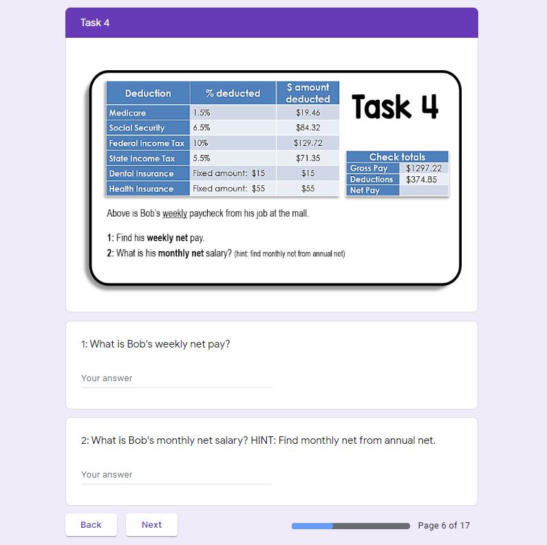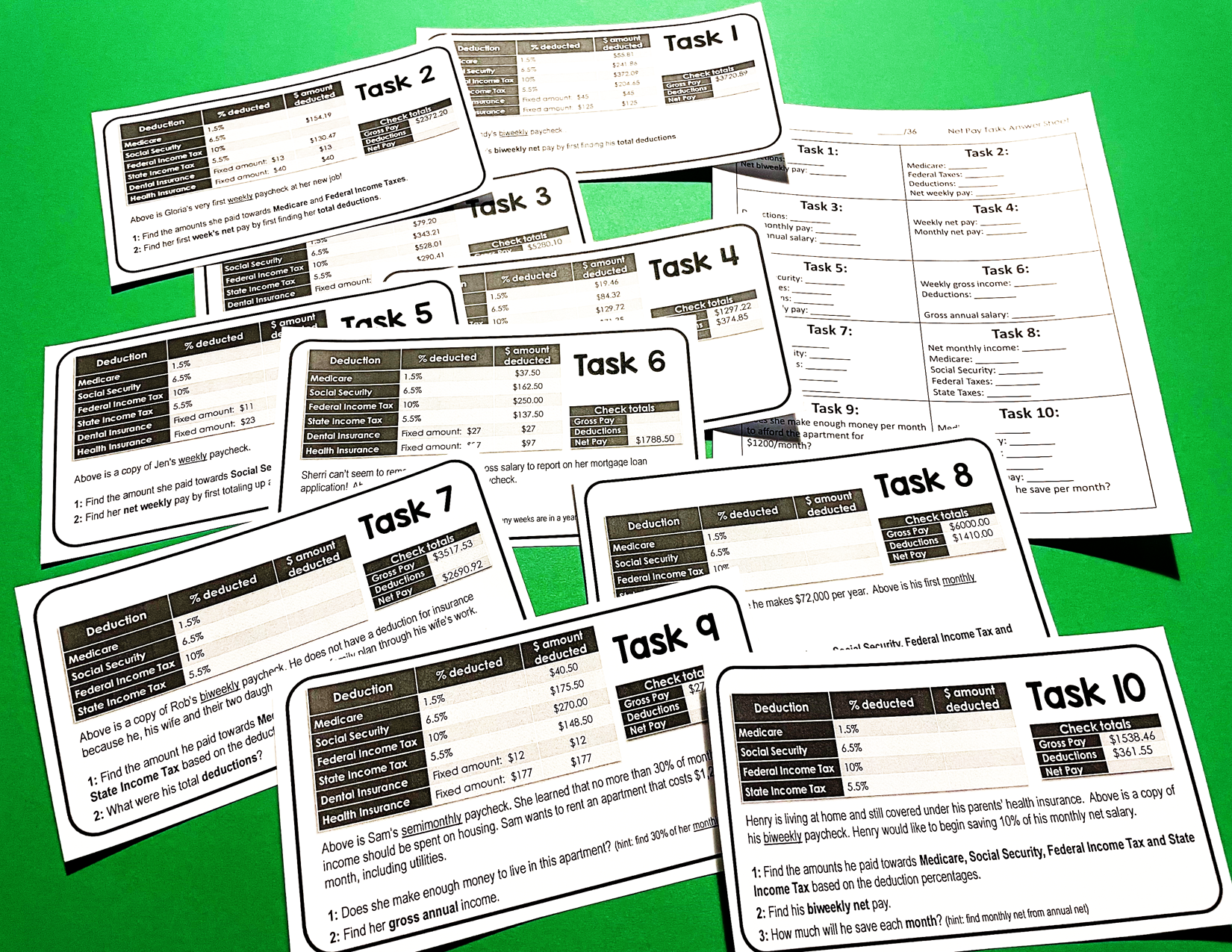 This was the perfect resource to reinforce gross vs. net income along with practicing basic life and math skills. The students were super engaged and most of them had not realized how much is taken out before this lesson. — Laura B.